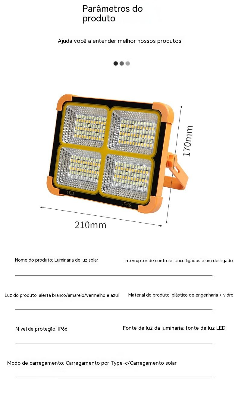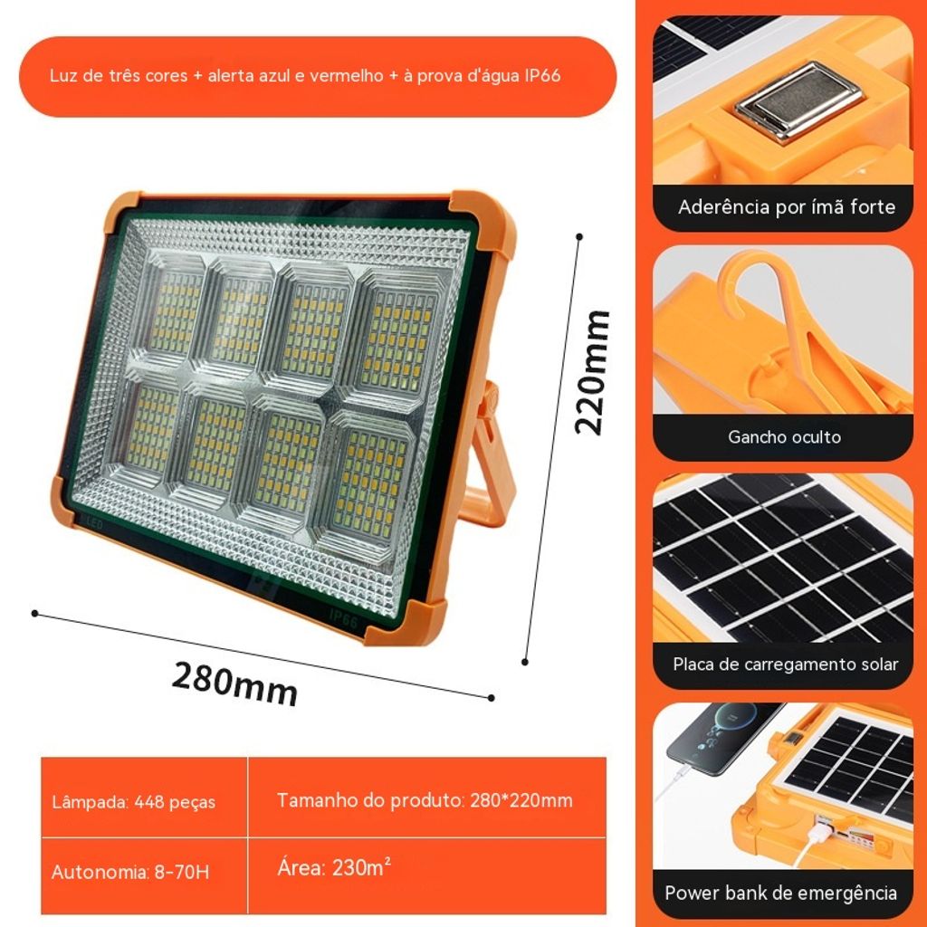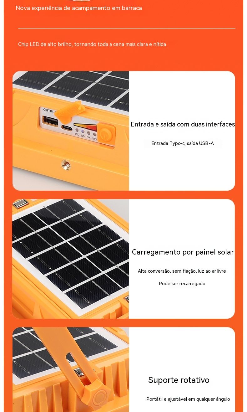 Luz Solar Portátil Recarregável | Holofone LED para Feiras, Acampamentos e Emergências na África