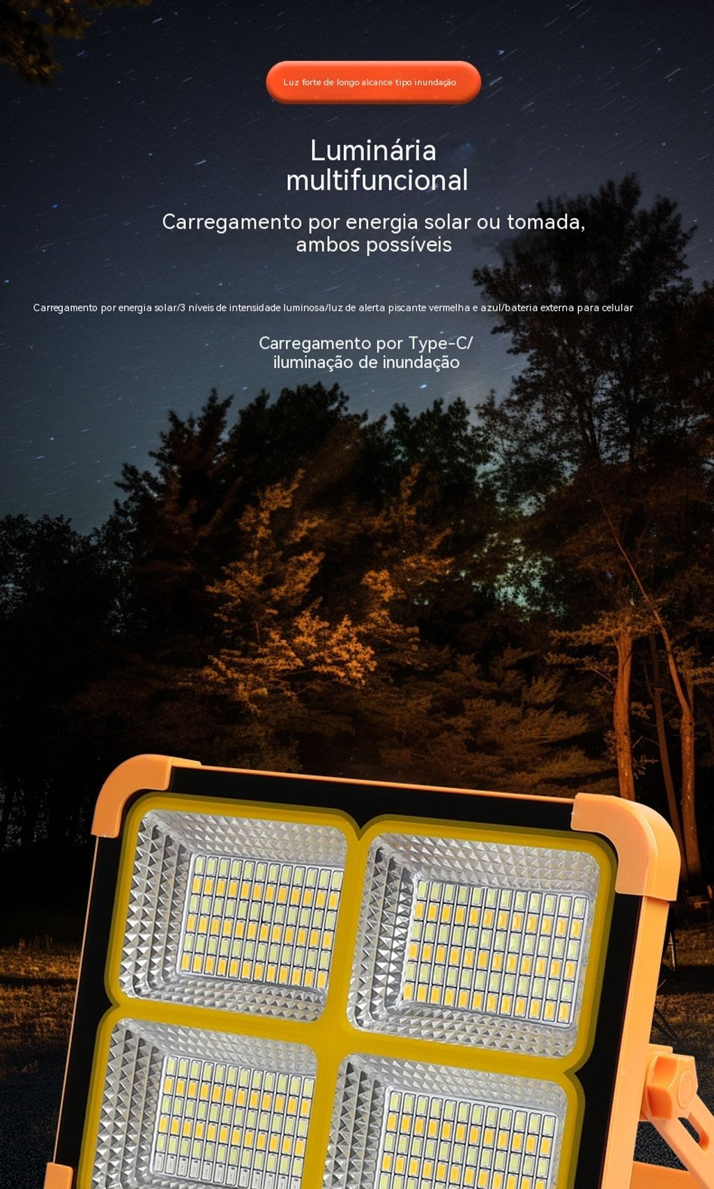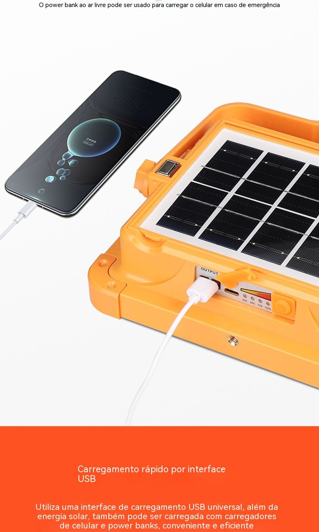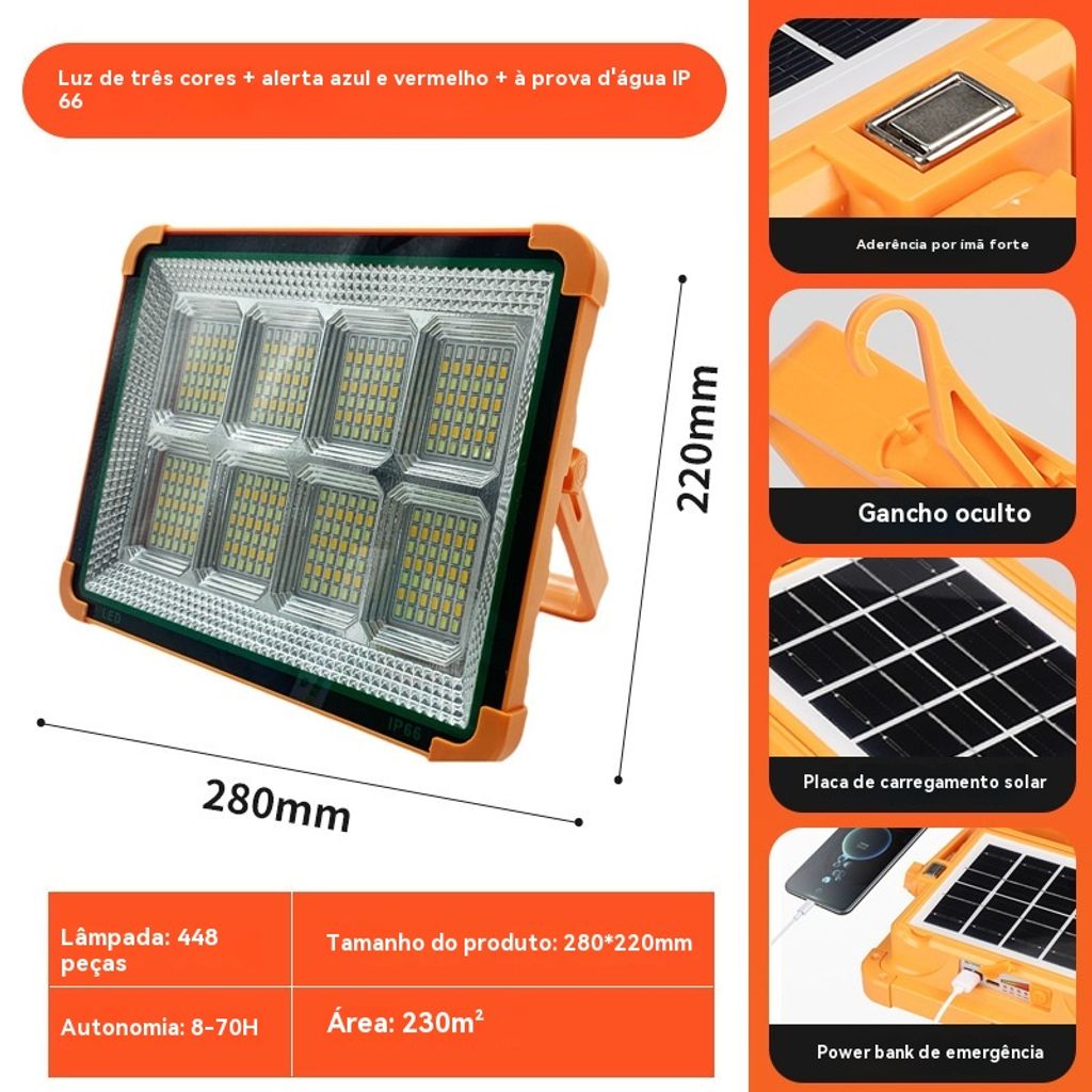 Luz Solar Portátil Recarregável | Holofone LED para Feiras, Acampamentos e Emergências na África